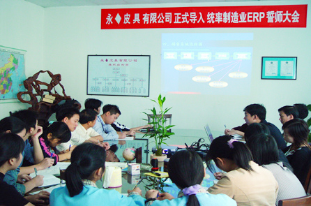 永◇皮具有限公司隆重召开宣誓大会,正式宣告导入统率制造业ERP系统。